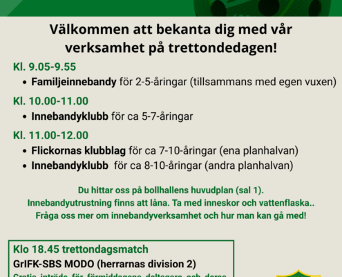 GrIFK Innebandys lag för 14–15-åriga pojkar söker en assisterande…
