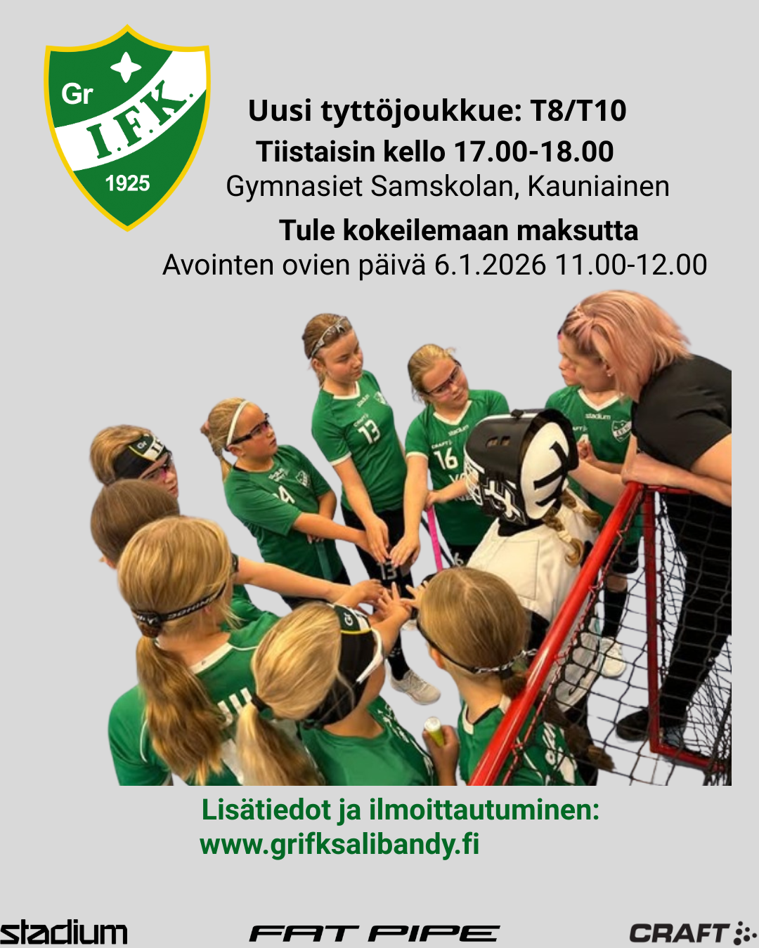 Joukkue aloittaa virallisesti kevätkautensa 13.1.2026. Järjestämme kuitenkin GrIFK Salibandyn avointen ovien päivän loppiaisena, 6.1.2026.